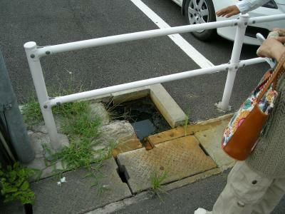 排水溝にしか見えませんが、ぬる〜いお湯が沸いてます! |